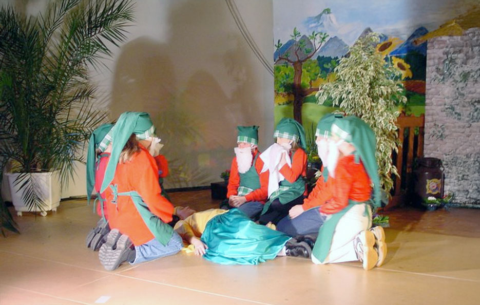 Im selben Jahr gründete sich auch die Kinder- und Jugendgruppe, die bis heute nicht nur den Nachwuchs sichert und fördert, sondern die mit „(K)ein Apfel für Schneewittchen“ ebenfalls ihre ersten Aufführungen in der Stadthalle hatte.
