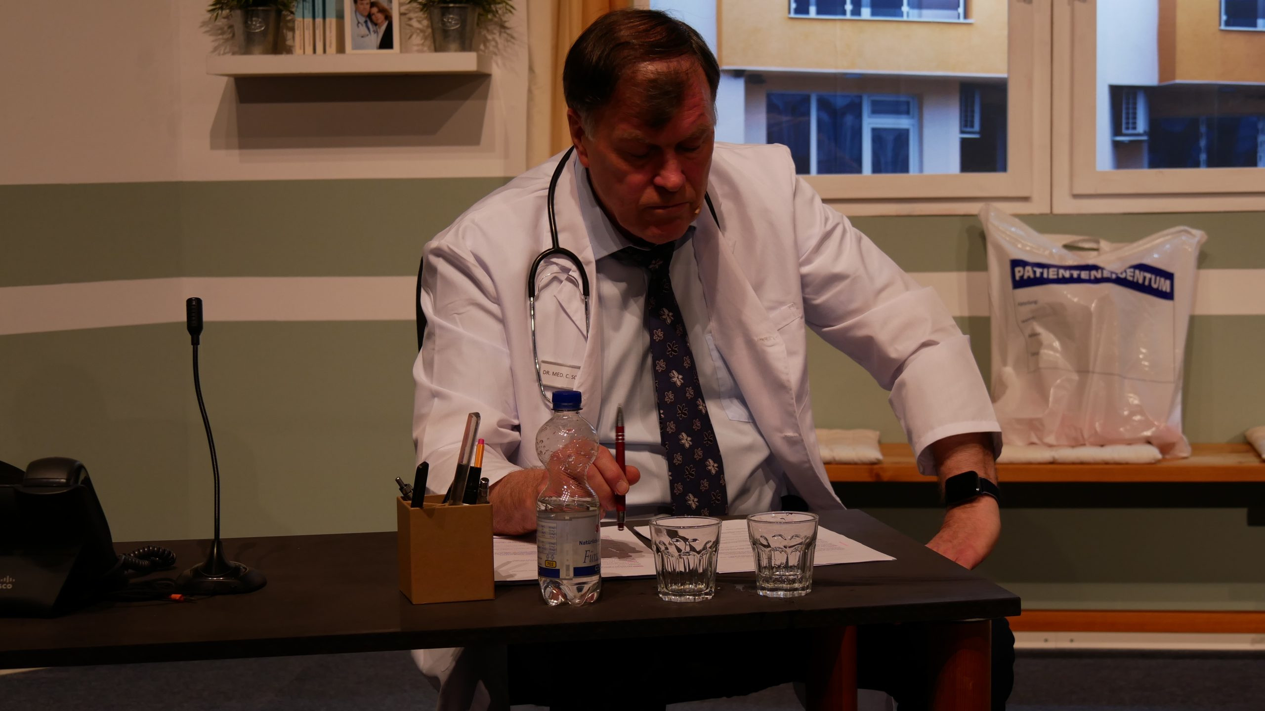Ein irritierter Polizist, ahnungslose Kolleginnen und Kollegen und ein verwirrter Patient verwandeln die Klinik schließlich in ein Irrenhaus. Es wird geflunkert, dass sich die Balken biegen und Dr. Schäfer tritt von einem Fettnäpfchen ins nächste.